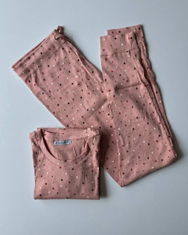 ست تيشرت و شلوار فانتزی کبریتیZara جنس نخ پنبه کبریتی،وارداتی،پارچه کشسانی داره,کیفیت بینظیر،هر سایز به دو الی سه سایز میخوره